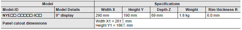 The following table provides specification details on dimensions and weights for the Panel PC with 9" display.